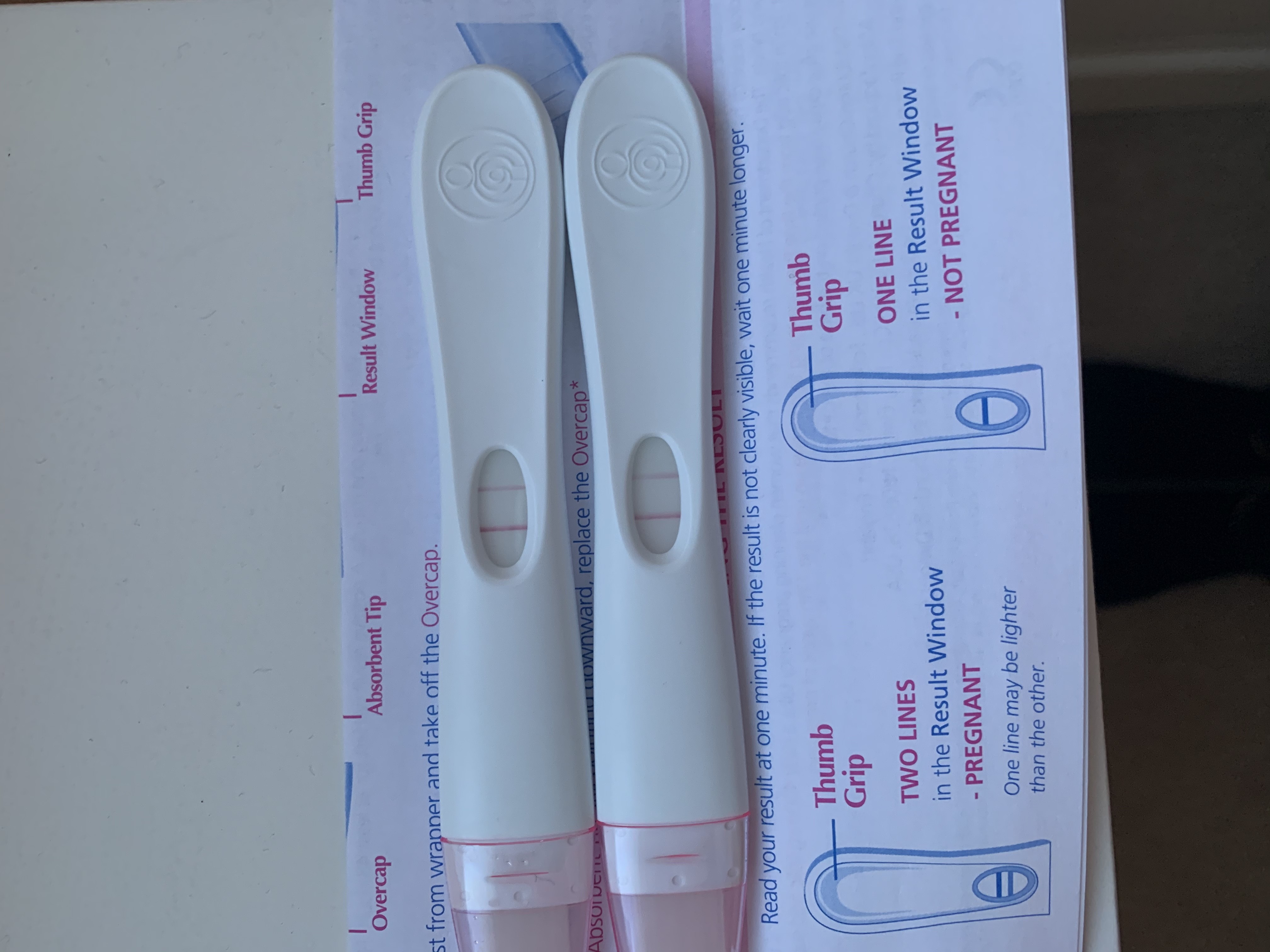 Last year I took one of these tests one week and it said negative then a week after decided to use the other strip as things just werent sitting right with me. For two-window tests the first window would show the test line and the second window would show a single line that looks like a minus - symbol. Got a positive test last night with a clearblue but it was quite fainttested this morning with a Tesco own brand test and negative.